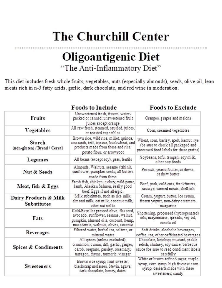 THE CHURCHILL CENTER – Oligoantigenic Diet